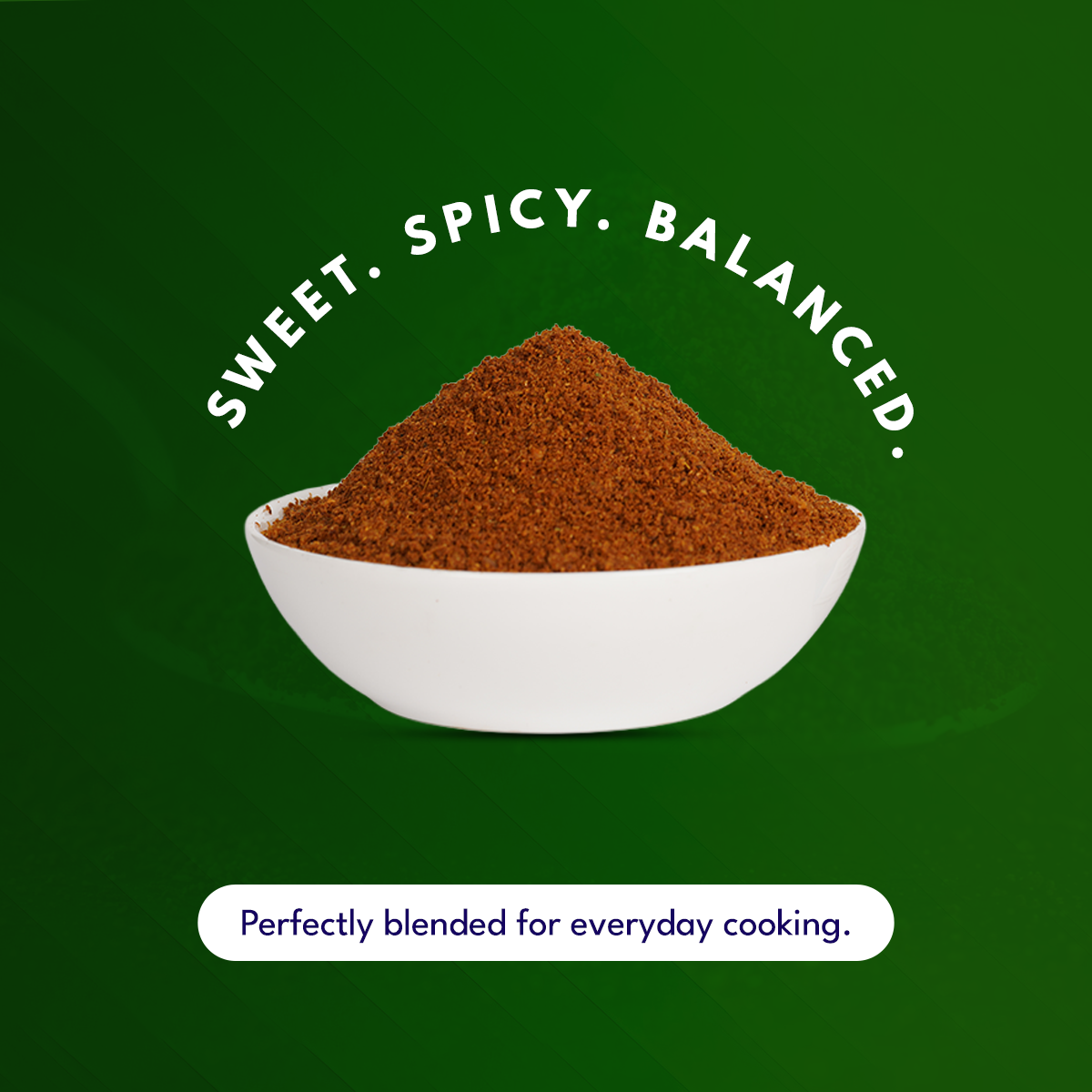Made from carefully selected roasted coconut, sesame, whole spices, and mild chilies, this masala brings subtle sweetness, depth, and a comforting aroma to your cooking.