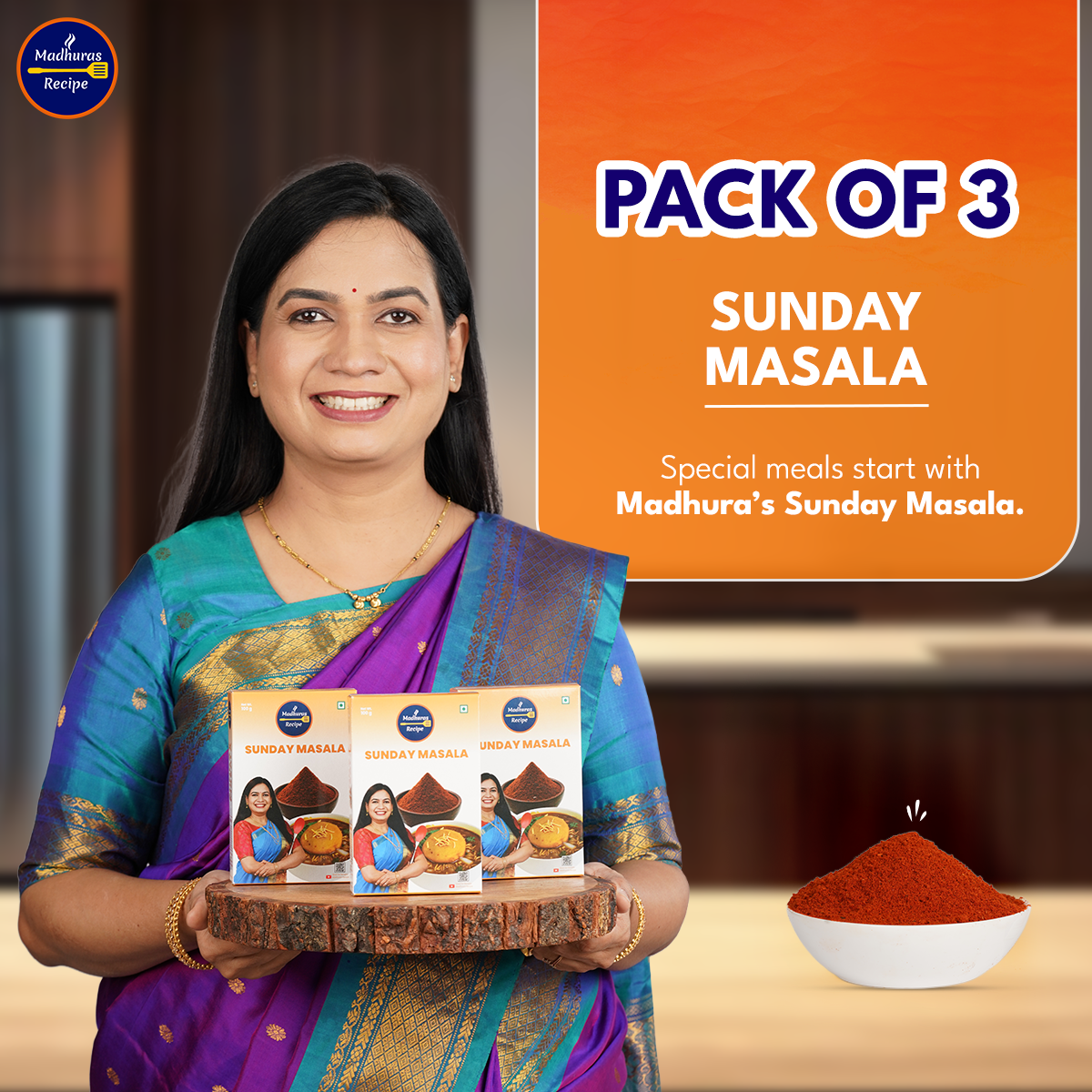 - 3 packs of Madhura’s Recipe Premium Sunday Masala - 300gm